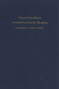 Grundsatzprobleme wirtschaftspolitischer Beratung