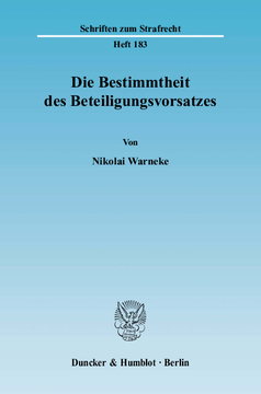Nikolai Warneke untersucht das von Rechtsprechung und Rechtslehre aufgestellte Postulat der Bestimmtheit des Teilnehmervorsatzes auf seine Berechtigung. Im Anschluß an die jüngsten Entscheidungen des Bundesgerichtshofes in Strafsachen (BGHSt 34, 63 zum Anstiftervorsatz und BGHSt 42, 135 zum Gehilfenvorsatz) werden Widersprüche der höchstrichterlichen Rechtsprechung dargestellt. Zur Vermeidung dieser Widersprüche und zur Vereinheitlichung des Beteiligungsvorsatzes leitet der Autor den Mindestinhalt des Vorsatzes für die verschiedenen Beteiligungsformen aus teleologischen und normtheoretischen Erwägungen ab. Hierzu wird nach einem Rückgriff auf allgemeine Vorsatzlehren und den Strafgrund der Vorsatzstrafe zunächst der Bezugspunkt des Vorsatzes entwickelt. Unter Berücksichtigung des Bezugspunktes des Vorsatzes wird sodann für die verschiedenen Beteiligungsformen - die Teilnahme und insbesondere entfernte täterschaftliche Begehungsformen - der notwendige Mindestinhalt des Vorsatzes entwickelt.Warneke gelangt zu dem Ergebnis, daß es der in den genannten Entscheidungen und von der herrschenden Lehre postulierten "Bestimmtheit des Vorsatzes" überhaupt nicht bedarf. Erforderlich, aber ausreichend ist für alle Beteiligungsformen das Vorliegen der im einzelnen herausgearbeiteten Mindestvoraussetzungen des Vorsatzes.