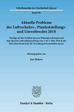 Der Band dokumentiert die Vorträge, die auf den 12. Speyerer Planungsrechtstagen und dem Speyerer Luftverkehrsrechtstag 2010 von Wissenschaftlern und Praktikern aus Anwaltschaft, Ministerien, Interessenverbänden und Justiz zu aktuellen Fragen des Luftverkehrs-, Planfeststellungs- und Umweltrechts gehalten wurden. In diesem Jahr lagen die Schwerpunkte der Planungsrechtstage in den Bereichen Artenschutz, Verfahrensrecht, gerichtlicher Rechtsschutz und Eisenbahnrecht. Der Luftverkehrsrechtstag widmete sich schwerpunktmäßig den Themen Zulassungsverfahren, Bau- und Anlagenschutz sowie Lärmschutz.