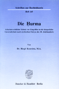 | b) Themen- und Problemaufriß und Lösungsansätze zur Analyse des schariatrechtlichen hurma-Schutzes | 77 | ||