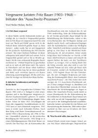 Vergessene Juristen: Fritz Bauer (1903–1968) – Initiator des ”Ausschwitz-Prozesses“