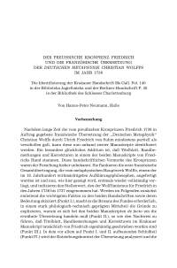 Der preußische Kronprinz Friedrich und die französische Übersetzung der Deutschen Metaphysik Christian Wolffs im Jahr 1736. Die Identifizierung der Krakauer Handschrift Ms Gall. Fol. 140 in der Biblioteka Jagiellonska und der Berliner Handschrift P. 38 in