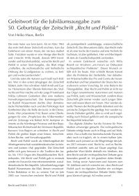 Geleitwort für die Jubiläumsausgabe zum 50. Geburtstag der Zeitschrift “Recht und Politik“