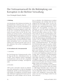 Der Vertrauensanwalt für die Bekämpfung von Korruption in der Berliner Verwaltung