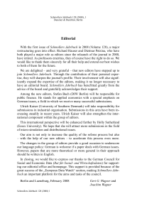 Journal of Contextual Economics – Schmollers Jahrbuch, Vol. 128 (2008), Iss. 1 : pp. 3–6 | First published online: October 03, 2017