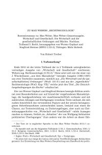 Zu Max Webers “Rechtssoziologie“. Rezensionsessay zu: Max Weber, Max Weber-Gesamtausgabe, Wirtschaft und Gesellschaft. Die Wirtschaft und die gesellschaftlichen Ordnungen und Mächte. Nachlass. Teilband 3: Recht, herausgegeben von Werner Gephart und Siegfr