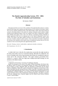 The Danish Apprenticeship System, 1931–2002: The Role of Subsidies and Institutions