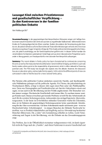 Luxusgut Kind zwischen Privatinteresse und gesellschaftlicher Verpflichtung – Zu den Kontroversen in der familienpolitischen Debatte