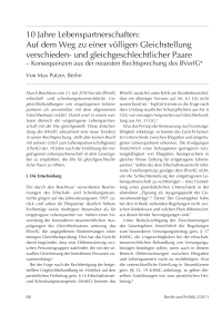 10 Jahre Lebenspartnerschaften: Auf dem Weg zu einer völligen Gleichstellung verschieden- und gleichgeschlechtlicher Paare