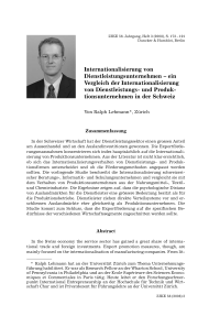 Internationalisierung von Dienstleistungsunternehmen – ein Vergleich der Internationalisierung von Dienstleistungs- und Produktionsunternehmen in der Schweiz