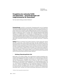 Perspektiven der nationalen Politik zum Klimaschutz – Herausforderungen und Langfristszenarien für Deutschland