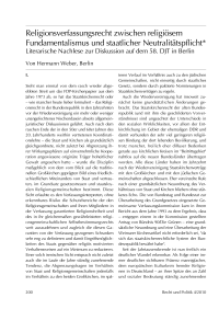 Religionsverfassungsrecht zwischen religiösem Fundamentalismus und staatlicher Neutralitätspflicht