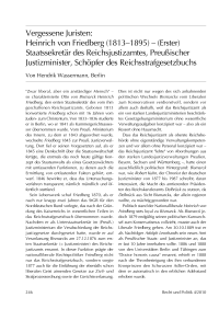Vergessene Juristen: Heinrich von Friedberg (1813–1895) – (Erster) Staatssekretär des Reichsjustizamtes, Preußischer Justizminister, Schöpfer des Reichsstrafgesetzbuchs