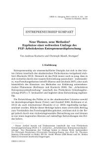 Neue Themen, neue Methoden Ergebnisse einer weltweiten Umfrage des FGF-Arbeitskreises Entrepreneurshipforschung