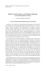 Defizite und Perspektiven der Bankenregulierung in der Europäischen Union