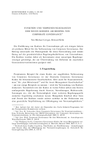 Funktion und Verwendungschancen der neuen Kodizes am Beispiel von Corporate Governance