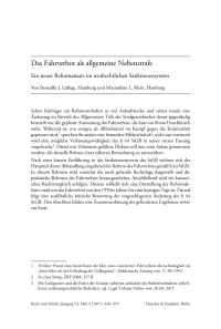 Das Fahrverbot als allgemeine Nebenstrafe. Ein neuer Reformansatz im strafrechtlichen Saktionensystem