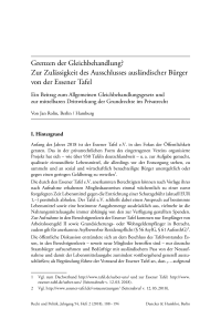 Grenzen der Gleichbehandlung? Zur Zulässigkeit des Ausschlusses ausländischer Bürger von der Essener Tafel. Ein Beitrag zum Allgemeinen Gleichbehandlungsgesetz und zur mittelbaren Drittwirkung der Grundrechte im Privatrecht