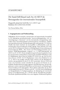 Die Stand-Still-Klausel nach Art. 64 AEUV als Rettungsanker der internationalen Steuerpolitik. Dargestellt anhand der EuGH-Rs. X, C-135/17 und Richtlinie (EU) 2016/1164 (ATAD)