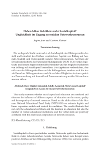 Haben höher Gebildete mehr Sozialkapital? Ungleichheit im Zugang zu sozialen Netzwerkressourcen