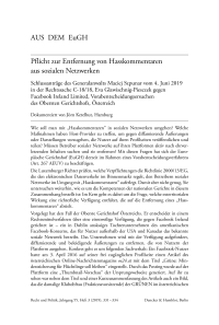 Schlussanträge des Generalanwalts Maciej Szpunar vom 4. Juni 2019 in der Rechtssache C-18/18, Eva Glawischnig-Piesczek gegen Facebook Ireland Limited, Vorabentscheidungsersuchen des Obersten Gerichtshofs, ÖsterreichRecht und Politik, Vol. 55 (2019), Iss. 3 : pp. 331–334 | First published online: September 03, 2019