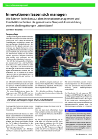Wie können Techniken aus dem Innovationsmanagement und Kreativitätstechniken die gemeinsame Neuproduktentwicklung zweier Mediengattungen unterstützen?Der Betriebswirt, Vol. 57 (2016), Iss. 1 : pp. 30–34 | First published online: May 14, 2019