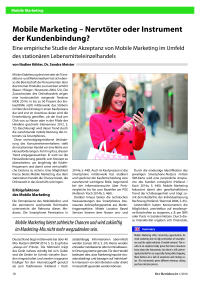 Eine empirische Studie der Akzeptanz von Mobile Marketing im Umfeld des stationären LebensmitteleinzelhandelsDer Betriebswirt, Vol. 57 (2016), Iss. 1 : pp. 10–14 | First published online: May 14, 2019