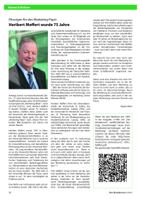 Ehrungen für den Marketing-Papst – Heribert Meffert wurde 75 Jahre / „Die neuen Kommunikationstechnologien sind strategische Herausforderungen“ – Interview mit Prof. Dr.Dr.h.c. mult. Heribert MeffertDer Betriebswirt, Vol. 53 (2012), Iss. 2 : pp. 30–32 | First published online: July 02, 2019
