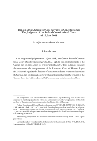 Ban on Strike Action for Civil Servants is Constitutional: The Judgment of the Federal Constitutional Court of 12 June 2018