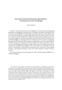 International Standard Setting in Biomedicine – Foundations and New Challenges