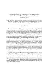 Philipp Tamme: Die Durchsetzung von EU-Recht durch den Europäischen Gerichtshof für Menschenrechte: Stellvertretende Verfassungsgerichtsbarkeit zur Effektivierung des IndividualrechtsschutzesGerman Yearbook of International Law, Vol. 61 (2018), Iss. 1 : pp. 561–564 | First published online: July 12, 2019