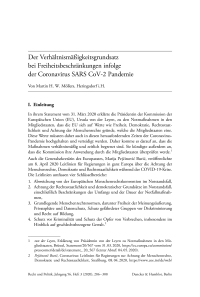 Der Verhältnismäßigkeitsgrundsatz bei Freiheitsbeschränkungen infolge der Coronavirus SARS CoV-2 Pandemie