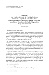 Grußwort der Bundesministerin für Familie, Senioren, Frauen und Jugend, Dr. Franziska Giffey für eine Heftreihe der Zeitschrift „Sozialer Fortschritt“ zum Thema „Genderaspekte bedürfnisgerechter Pflege alter Menschen“