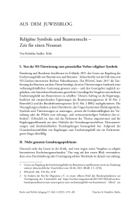 Religiöse Symbole und Beamtenrecht – Zeit für einen Neustart