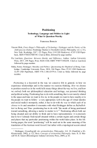 Technology, Language and Politics in Light of What Is Question-WorthyHeidegger Studies / Heidegger Studien / Etudes Heideggeriennes / Studi Heideggeriani, Vol. 36 (2020), Iss. 1 : pp. 291–310 | First published online: November 23, 2020