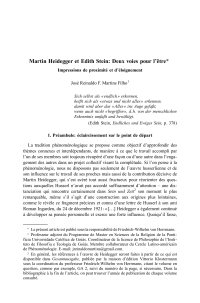Martin Heidegger et Edith Stein: Deux voies pour l’être. Impressions de proximité et d’éloignement