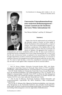 Unerwartete Unternehmensinsolvenz trotz testiertem Risikomanagement? – Lessons Learned aus der Insolvenz der Gerry Weber International AG