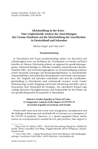 Gleichstellung in der Krise – Eine vergleichende Analyse der Auswirkungen der Corona-Pandemie auf die Gleichstellung der Geschlechter in Deutschland und Schweden