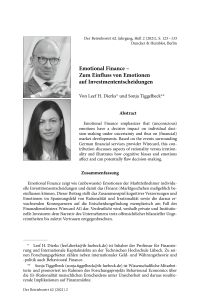 Emotional Finance – Zum Einfluss von Emotionen auf Investmententscheidungen