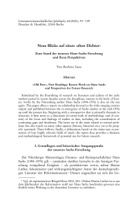 Zum Stand der neueren Hans-Sachs-Forschung und ihren PerspektivenLiteraturwissenschaftliches Jahrbuch, Vol. 62 (2021), Iss. 1 : pp. 91–149 | First published online: November 10, 2021