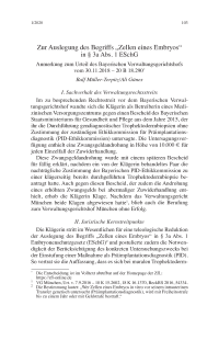 Anmerkung zum Urteil des Bayerischen Verwaltungsgerichtshofs vom 30.11.2018 – 20 B 18.290Zeitschrift für Lebensrecht, Vol. 29 (2020), Iss. 1 : pp. 103–109 | First published online: April 06, 2022