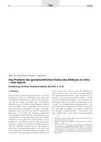 Das Problem des grundrechtlichen Status des Embryos in vitro – eine Aporie