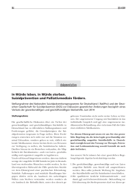 In Würde leben, in Würde sterben. Suizidprävention und Palliativmedizin fördern.