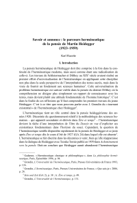 Savoir et annonce : le parcours herméneutique de la pensée de Martin Heidegger (1923 – 1959)