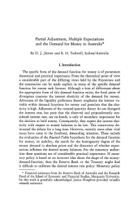 Partial Adjustment, Multiple Expectations and the Demand for Money in Australia
