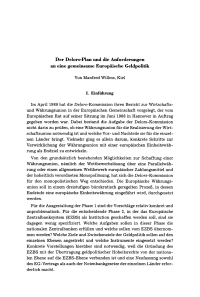 Der Delors-Plan und die Anforderungen an eine gemeinsame Europäische Geldpolitik