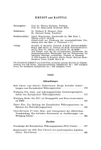 Credit and Capital Markets – Kredit und Kapital,