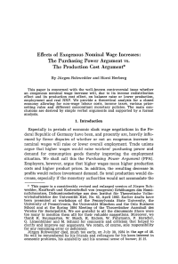 Effects of Exogenous Nominal Wage Increases: The Purchasing Power Argument vs. The Production Cost Argument