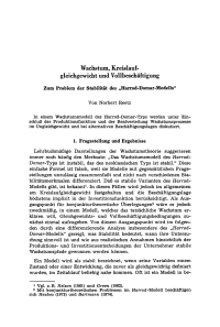 Wachstum, Kreislaufgleichgewicht und Vollbeschäftigung Zum Problem der Stabilität des „Harrod-Domar-Modells“