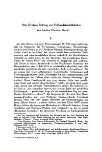 Otto Hintzes Beitrag zur Volkswirtschaftslehre